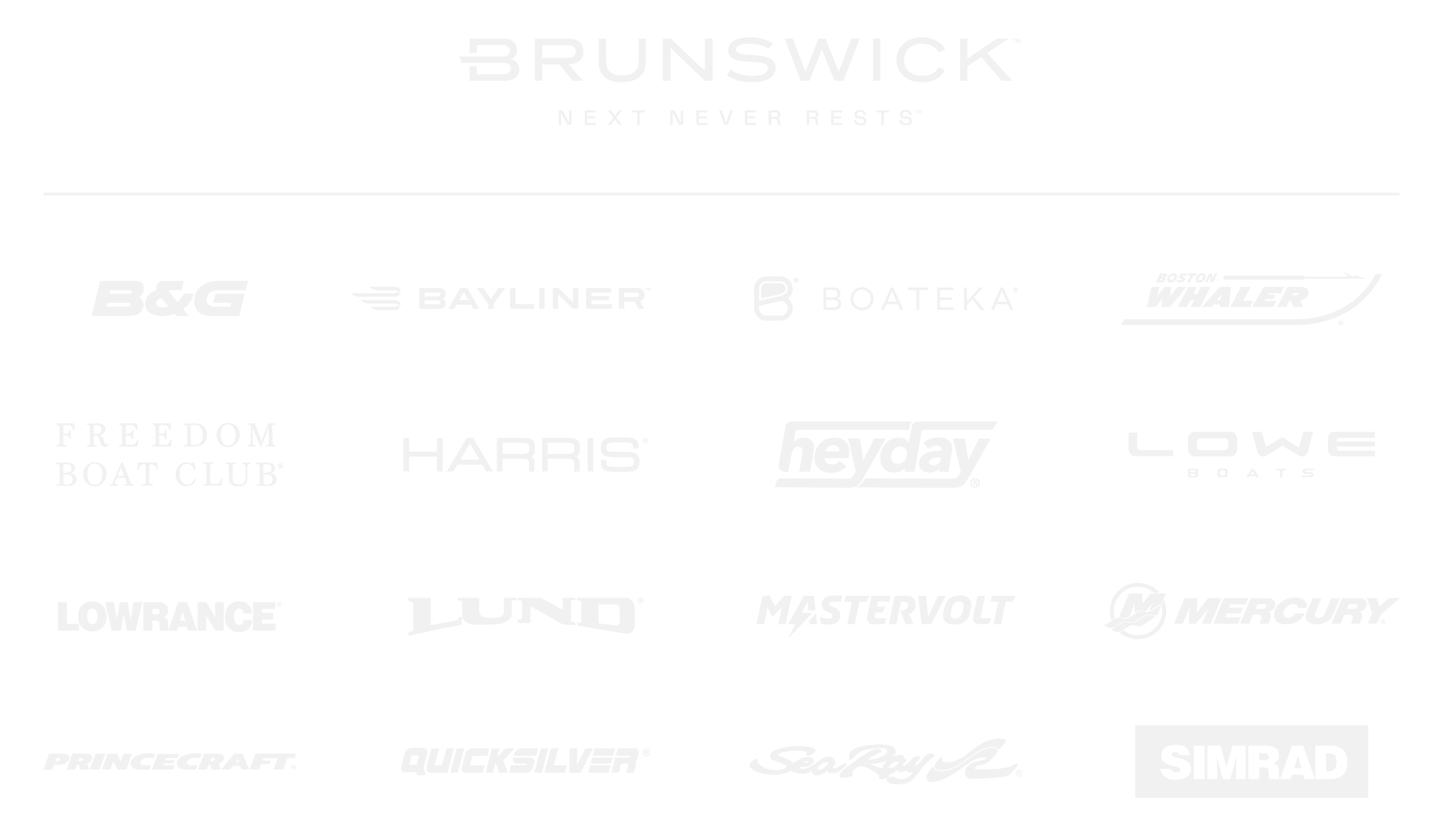 ブランズウィックボートグループは世界24か国の拠点と170以上の販売網、米国や欧州を中心に18ブランドの人気ボートを製造販売する世界有数のグローバルリーダー【日本総輸入販売元】BAYLINER QUICKSILVER HEYDAY TROPHY
